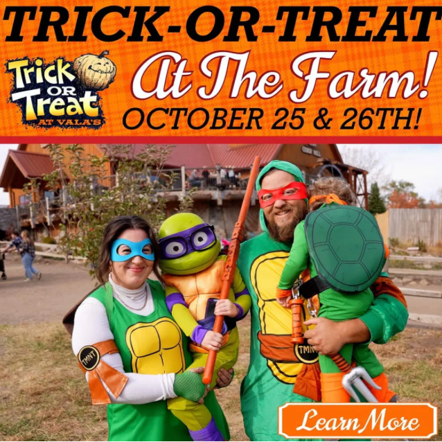 Vala’s Pumpkin Patch is hosting a family-friendly Halloween weekend 🎃 Kids can trick-or-treat across themed stations, enjoy live attractions, and catch candy launched hourly from the famous Candy Cannon.